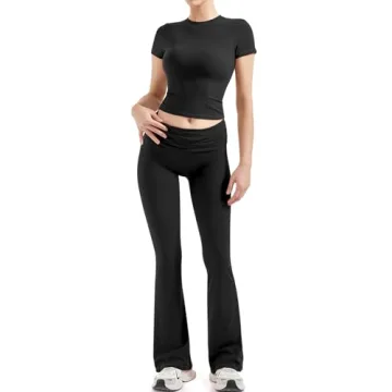 The highlight of this set is the classy foldover flare pants, featuring a flattering high-waisted fit. Their ruched flared design adds a contemporary twist, ensuring versatility for different occasions. Accompanied by a crew neck fitted shirt, you’ll find endless styling options to match your mood—be it a cozy evening in or a chic outing. The well-constructed slim fit makes it ideal for all body types, allowing everyone to feel fabulous in their skin.