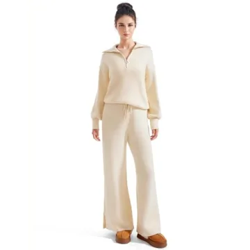 Introducing the exquisite SUUKSESS Women 2 Piece Lounge Sets—an ideal choice for those who refuse to compromise on comfort while exuding effortless style. This stunning matching set features an oversized quarter zip pullover and flowy wide leg pants, crafted from a premium soft knit fabric that envelops you in warmth and ease. Whether you're cozying up at home, making a stylish entrance at coffee dates, or teaching preschool classes, this set ensures that you do so comfortably and chicly....