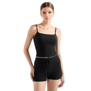 Show moreDiscover the ultimate blend of comfort and style with the SUUKSESS Women 2 Piece Lounge Sets Shorts Pajama Set. Crafted from a luxurious fabric blend of 90% cotton and 10% elastane, this stylish set is designed to keep you feeling cozy and chic, whether you're lounging at home or stepping out for casual outings. The buttery soft material is breathable and feature-rich, boasting a 4-way stretch that moves with your body, allowing for unrestricted movement no matter the activity. The set comprises a trendy sleeveless square neck crop top paired with matching elastic high-waisted shorts, creating a fashionable set that works perfectly for any warm weather occasion.