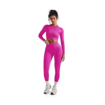 SUUKSESS Women 2 Piece Workout Sets Hidden Scrunch Butt Lifting Seamless Leggings Long Sleeve Yoga Crop Tops High Waisted Yoga Pants (Pink, S)