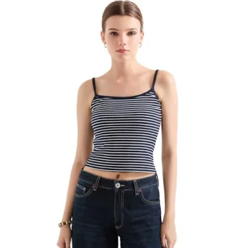 Show more Step out in style this season with the SUUKSESS Women Cotton Ribbed Going Out Camisole Tops. Crafted from a delightful blend of 95% cotton and 5% elastane, these trendy camis are your go-to choice for an effortlessly chic look. The buttery soft fabric not only ensures supreme comfort but also offers breathability and a four-way stretch, allowing you to dance the night away without a worry. The full-length camisole design features adjustable spaghetti straps that gracefully accentuate your silhouette, making it a perfect piece for layering or wearing solo. With a classic square neck and eye-catching striped design in navy, this camisole is a must-have basic that epitomizes style and versatility.