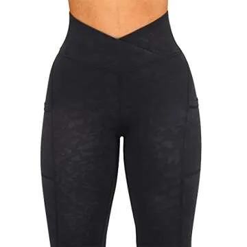SUUKSESS Women Crossover Workout Leggings with Pockets High Waisted Gym Yoga Pants (Leopard Black, L)