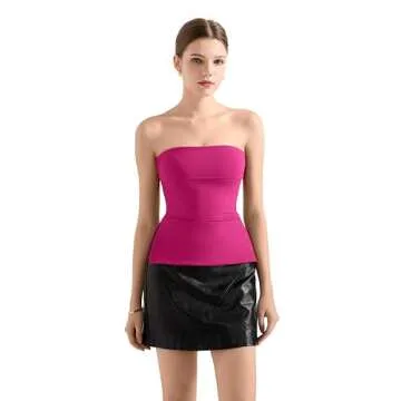 SUUKSESS Women Double Lined Going Out Trendy Tube Tops Side Split Sexy Strapless Tanktops (Hot Pink,S)