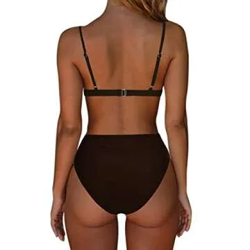 SUUKSESS Women High Waisted High Cut Bikini Sets Sexy Triangle Two Piece Swimsuits Push Up Bathing Suits (Deep Brown, L)