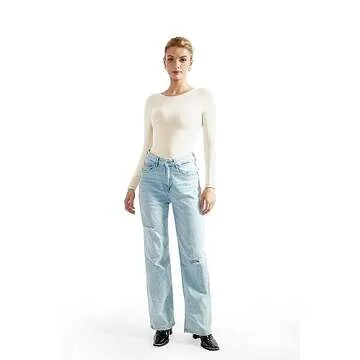 SUUKSESS Women Long Sleeve Bodysuit Basic Crew Neck Thong Body Suit Shirts Top for Spring (White, M)