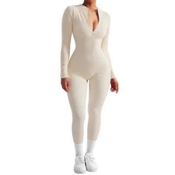 Elevate your wardrobe with the SUUKSESS Women's Long Sleeve Ribbed Jumpsuit, a perfect blend of style and functionality. This sexy zip-up front jumpsuit is designed to flatter your figure while offering unmatched comfort. Made from soft, ribbed, and stretchy fabric, it features a deep V zipper front for a touch of sensuality, mock neck, and long sleeves to keep you warm during cooler months. The double-lined bra provides excellent support, making it ideal for various occasions from casual outings to night...
