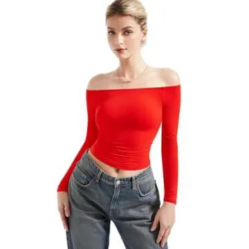SUUKSESS Women Off The Shoulder Double Lined Long Sleeve Shirts Fitted Y2k Basic Going Out Tops (Dream Red, XS)