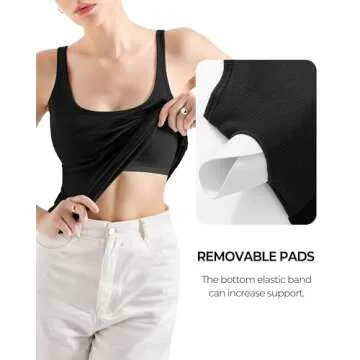 SUUKSESS Women Padded Cotton Ribbed Long Tank Tops - Summer Cami Scoop Neck Sleeveless Casual Shirts