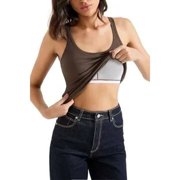 SUUKSESS Women Padded Cotton Ribbed Tank Tops Summer Going Out Basic Scoop Neck Cami Tops Sleeveless Casual Shirts (Dark Brown, S)