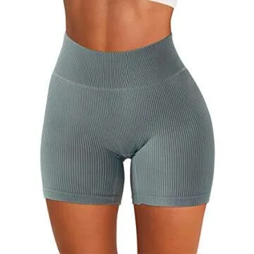 SUUKSESS Women Ribbed Biker Shorts Seamless High Waisted Workout Short Leggings (Light Green, M)