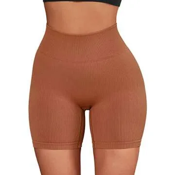 SUUKSESS Women Ribbed Biker Shorts Seamless High Waisted Workout Short Leggings (Brown, M)