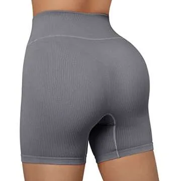 SUUKSESS Women Ribbed Biker Shorts Seamless High Waisted Workout Short Leggings (Grey, M)