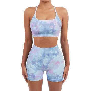 SUUKSESS Women Seamless 2 piece Workout Sets Strappy Padded Sports Bra Booty High Waisted Shorts Outfits (Candy Tie Dye,S)
