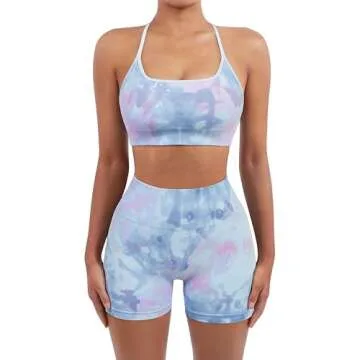 SUUKSESS Women Seamless 2 Piece Workout Sets - Strappy Sports Bra & Shorts (Candy Tie Dye, L)