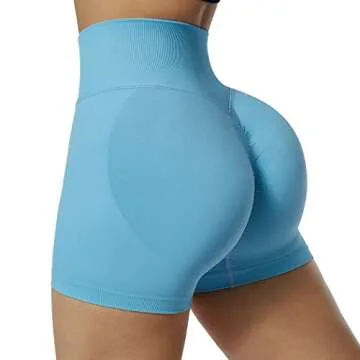 SUUKSESS Women Seamless Booty Shorts Scrunch Butt Lifting High Waisted Workout Shorts (3" Sky Blue, S)