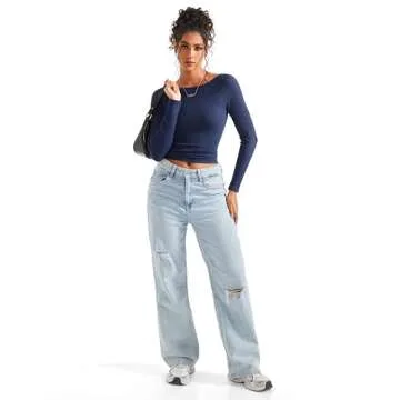 SUUKSESS Women Seamless Ribbed Long Sleeve Tops Crew Neck Modal Going Out Fitted Shirt for Fall (Navy Blue, S)