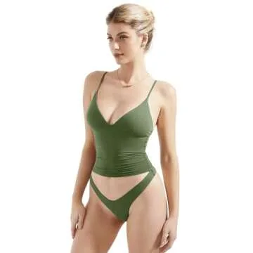 SUUKSESS Women Sexy Deep V Neck Sleeveless Fitted Basic Tops Y2K Going Out Crop Tank Top Camisole (Army Green,L)