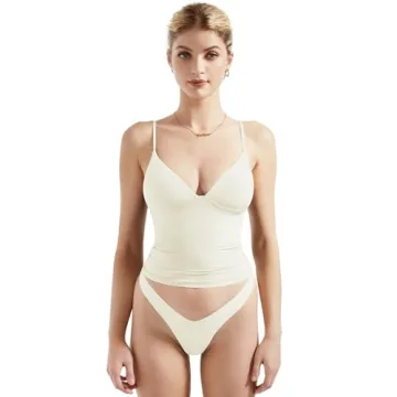 Show moreIntroducing the SUUKSESS Women Sexy Deep V Neck Sleeveless Fitted Basic Top, a chic and versatile addition to your wardrobe that embodies both comfort and style. Crafted from an exquisite blend of 76% Polyamide and 24% Elastane, this cami is designed to envelop you in a buttery soft fabric that feels like a second skin. With its clever double-layered design, you can confidently wear this top without worrying about any transparency issues, making it suitable for both casual outings and special events.