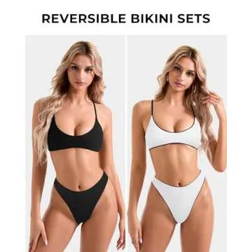 SUUKSESS Women Sexy High Waisted Thong Bikini Sets Reversible String Two Piece Swimsuits Push Up Bathing Suit(Black White,S)