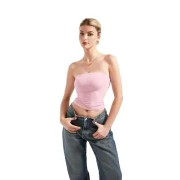 SUUKSESS Women Sexy Tube Top Summer Y2K Going Out Tops Casual Sleeveless Double Lined Basic Tank Top (Baby Powder, S)