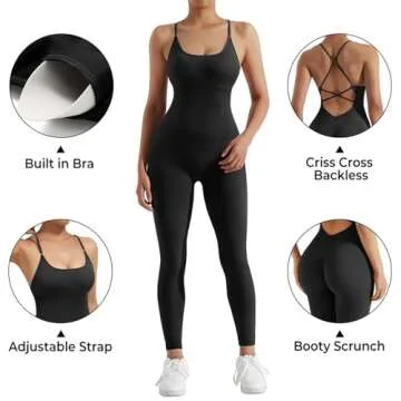 SUUKSESS Women Strappy Backless Workout Jumpsuit Sleeveless Spaghetti Strap Romper Seamless One Piece Bodycon (Black, S)