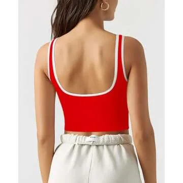 SUUKSESS Women Sweetheart Neckline Longline Sports Bra Padded Basic Workout Crop Tank Top (Red, L)