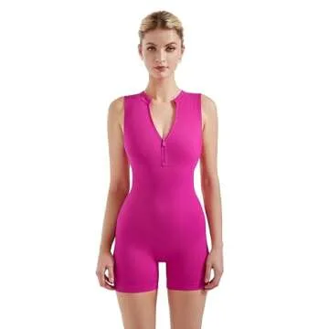 Show moreIntroducing the SUUKSESS Women Zip Up Sexy Bodycon Rompers, a stunning blend of comfort, style, and versatility, designed specifically for the modern woman. Crafted from premium ribbed seamless fabric, these rompers feature a convenient zip-up front and a chic deep V mock neck that exudes confidence and sass. The body-hugging silhouette is paired with removable padded bras to ensure a flattering fit while providing tummy control – the perfect companion for any occasion, from casual outings to vibrant night outs.