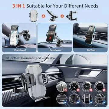 Show moreExperience ultimate convenience with the SUUSON Upgraded 3-in-1 Car Phone Holder Mount, designed for seamless integration into your driving routine. This innovative phone mount combines versatility and durability, allowing you to securely install it on your dashboard, windshield, or air vent. Engineered for all phone sizes ranging from 4.0 to 7.0 inches, this holder provides an easy and safe way to use your phone for navigation, hands-free calls, or music control while keeping your eyes on the road. With a sleek gray finish and thoughtfully designed features, the SUUSON car phone holder not only meets varying driving conditions but also enhances your vehicle’s interior with its modern look.