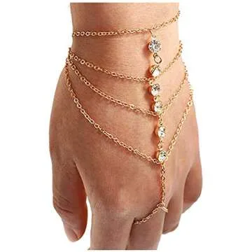 Suyi Finger Ring Bracelet Hand Harness Chain Bracelet Rhinestone Gifts for Women Gold 10CM/3.9IN 2 Pieces