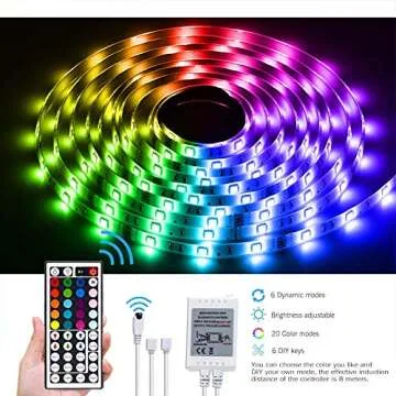 Suyoo LED Strip Lights 16.4ft/5m Flexible Color Changing Led Light Strip Kit 5050 RGB Rope Light with 44 Key IR Remote 12V2A Power Supply