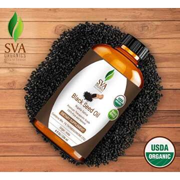 SVA ORGANICS USDA Certified Black Seed Carrier Oil (8 Oz)- 100% Pure Natural Cold Pressed, Unrefined, Therapeutic Grade for Skin, Hair