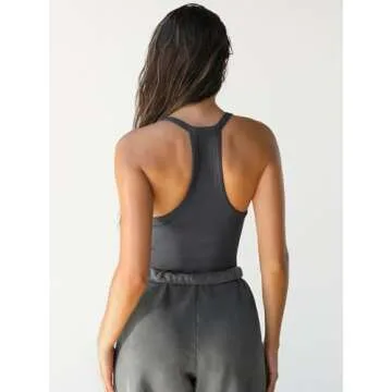 SVALIY Workout Tops for Women Racerback Tank Tops Yoga Gym Ribbed Sleeveless Shirts Clothes Dark Gray S