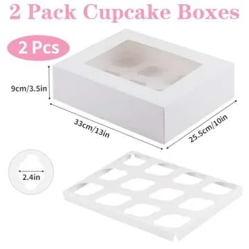 Svalor Cupcake Boxes, 2 Pack Disposable Cupcake Containers for 12 Count with Window