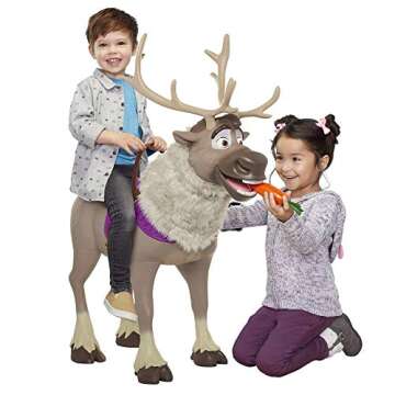 Sven features over 20 interactive sounds, including charming phrases in Kristoff's delightful 'Sven' voice. Kids will love feeding him his carrot and hearing the amusing chomping sound, or pulling on Sven's reins to listen to realistic galloping noises and other reindeer sounds. His luxuriously soft faux fur mane adds to his cuddly appeal, making him perfect for hugging and companionship.