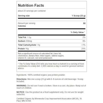 Swanson 100% Certified Organic Pea Protein Powder Non-GMO 1.1 lb (503 g) Pwdr