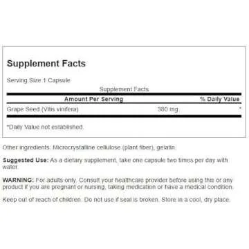 Swanson Grape Seed Heart Antioxidant Free Radicals Healthy Blood Pressure Support Polyphenols OPCS (Oligomeric Proanthocyanidins) Herbal Supplement 380 mg 100 Capsules