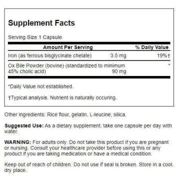 Experience a new level of digestive wellness with Swanson Premium Brand Ox Bile. Formulated to provide essential support for your body, this supplement is specifically designed for those who seek to enhance their digestive health. Each capsule delivers a potent dose of 90 mg of standardized ox bile, enriched with 45% cholic acid—the primary human bile acid necessary for optimal digestion. This product is compliant with GMP guidelines set by the FDA, ensuring its quality and effectiveness...