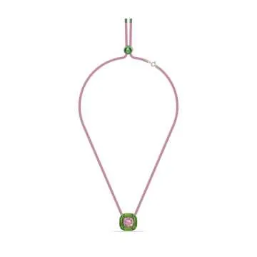 Swarovski Dulcis Necklace, Single Pink Crystal in a Bright Green Setting on a Braided Cord, part of the Dulcis Collection