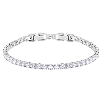 Swarovski Tennis Deluxe Collection Women's Tennis Bracelet, Sparkling Clear Crystals with Rhodium Plated Band