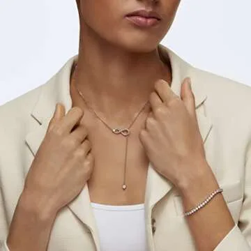 Swarovski Tennis Deluxe Collection Women's Tennis Bracelet, Sparkling White Crystals with Rose-Gold Tone Plated Band