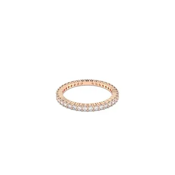 Show moreIntroducing the exquisite Swarovski Vittore Ring, a stunning addition to any jewelry collection that fuses sophistication with a hint of glam. Crafted with sparkling Swarovski crystals set in a beautiful rose gold-tone PVD finished band, this ring represents a perfect blend of elegance and modern design. It's not just a ring; it's a statement piece designed to captivate and shimmer in any light. The clear stones are arranged to reflect light from every angle, creating a breathtaking sparkle that is sure to draw admiration. Whether worn solo for a minimalist look or stacked with other favorites for a bold statement, this ring easily adapts to suit any occasion or outfit.