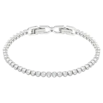 Show moreThe Imber bracelet by Swarovski is a stunning piece that embodies delicate elegance and minimalistic charm. Measuring in at approximately 6 7/8 inches, this bracelet showcases the brand's commitment to quality through its vibrant white Swarovski crystals. These crystals are meticulously set in a rhodium-plated design, resulting in a graceful yet bold statement accessory suitable for a variety of styles and occasions. The combination of sparkle and sleek design makes this bracelet perfect for anyone who appreciates fine jewelry.