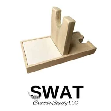 Introducing the **SWAT Glue Gun Holder**, a must-have for every craft enthusiast! Handcrafted in the USA by SWAT Creative Supply LLC, this innovative glue gun holder is designed to enhance your crafting experience while prioritizing safety and convenience. Its removable ceramic tile adds a unique touch of style and ensures easy cleanup, while the secure grip guarantees that your glue gun remains in place, preventing mishaps and table surface damage. This thoughtful design not only keeps your workspace tidy...