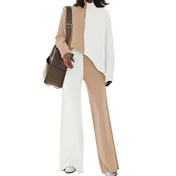 Discover the ultimate blend of comfort, style, and practicality with our Sweater Sets for Women Colorblock 2 Piece Knit Outfits Wide Leg Pants Lounge Sets. This fabulous ensemble features a chic high neck long sleeve pullover top paired with relaxed wide-leg pants, making it the ideal choice for any occasion—whether lounging at home or stepping out for a casual outing. Crafted from high-quality knit fabric, the set promises comfort without sacrificing style, making you look effortlessly...
