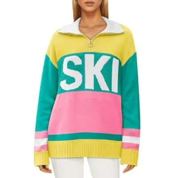 Show more If you're searching for that perfect blend of cozy comfort and stylish flair, look no further than the Yousify Women's Knit Sweater. This eye-catching pullover is expertly designed with a stand collar, v-neck, and striking color block skier details, making it not just a wardrobe staple but a statement piece!