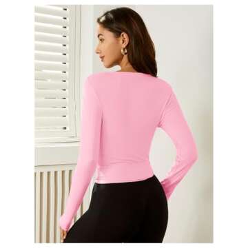 SweatyRocks Women's 2 Pack Yoga Shirts Wrap Ruched Tie Front Long Sleeve Workout T Shirts Pink and White Small
