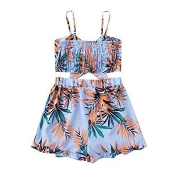 Two piece sleeveless crop top camisole and shorts set featuring floral print and elastic waistband