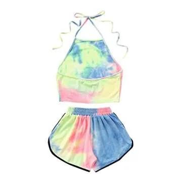 SweatyRocks Women's 2 Piece Set Halter Crop Top and Shorts Set Tie Dye M