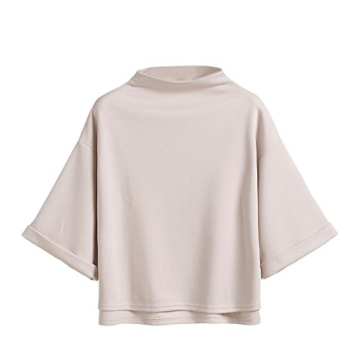 SweatyRocks Women's Elegant 3/4 Sleeve Mock Neck Loose T-Shirt - Apricot