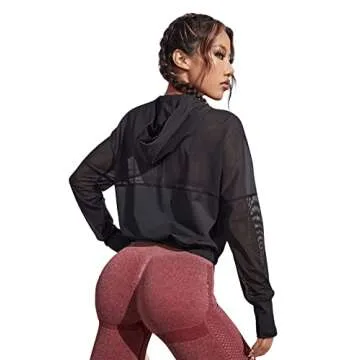 Show moreIntroducing the SweatyRocks Women's Activewear Long Sleeve Hooded Sweatshirt, the perfect blend of style, comfort, and functionality. Crafted with a lightweight and breathable polyester fabric, this sheer mesh top is designed for those who lead an active lifestyle. Whether you're hitting the gym, going for a jog, or simply enjoying a casual day out, this sweatshirt has got you covered. Its drop shoulder design and hooded feature not only enhance your look but also provide added warmth during cooler months. Available in classic black, this versatile piece seamlessly complements any outfit, creating an effortlessly chic look.